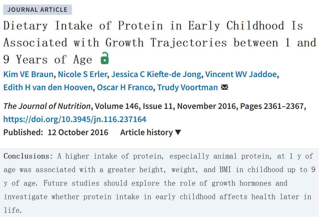 因此,可以说,蛋白质与孩子身高息息相关,甚至是决定孩子身高的关键因素,下面我们就来看几项研究。