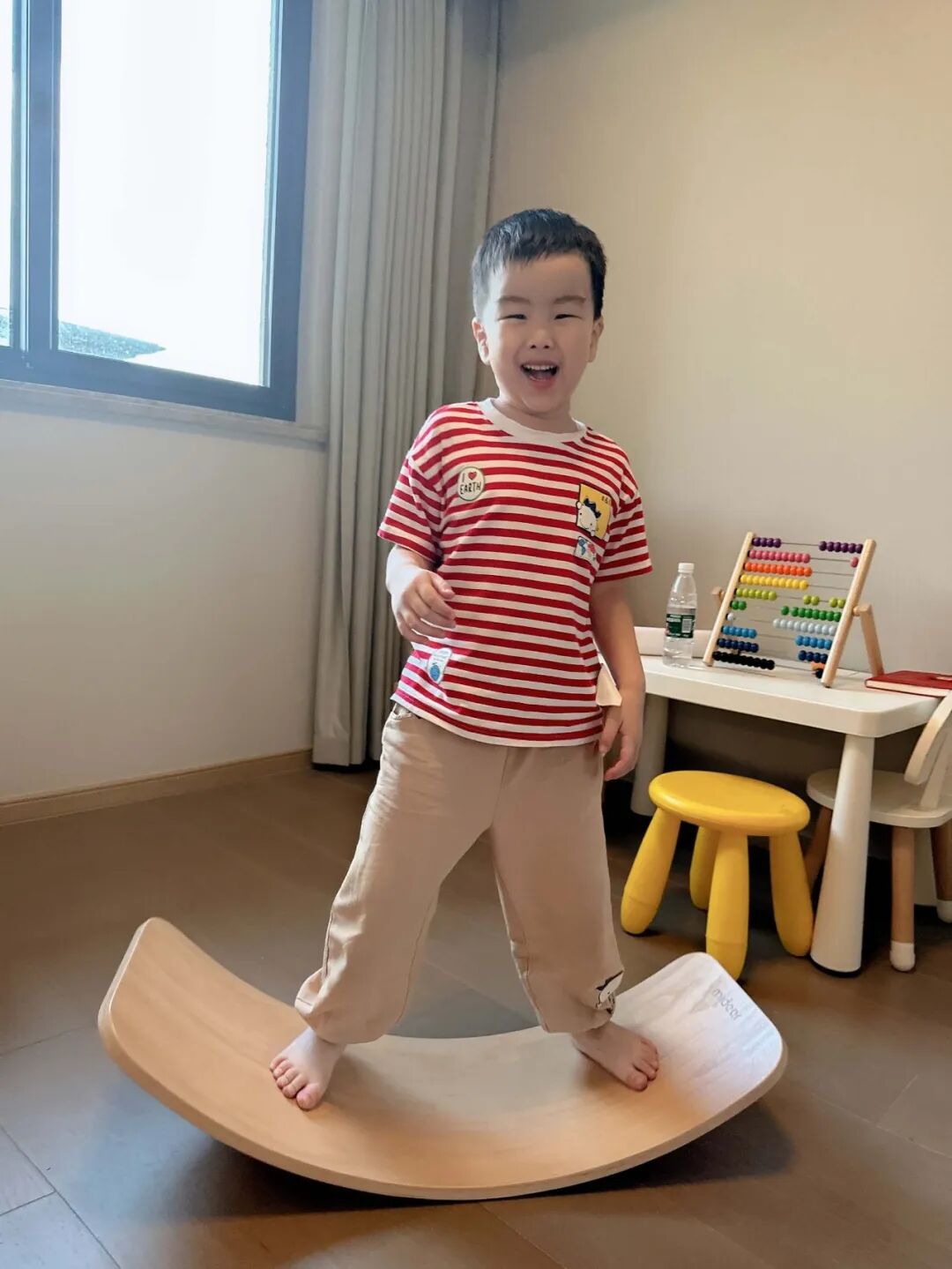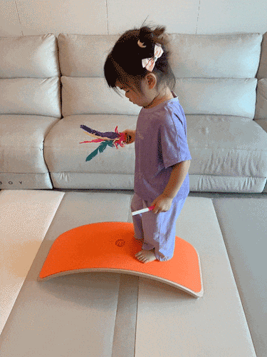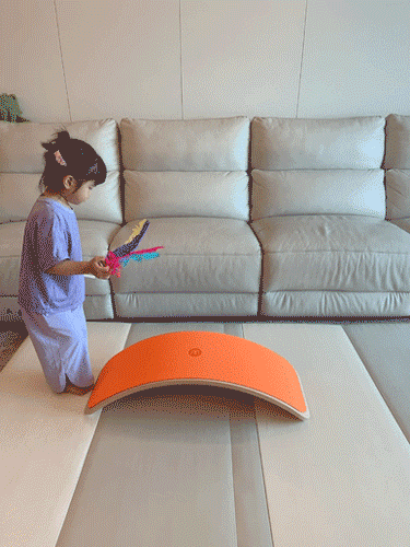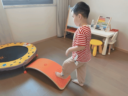 任何时候,孩子都可以利用它做各种形式的走、跳训练,来发展触觉、前庭觉和空间感知能力,更好地控制自己的身体。