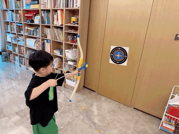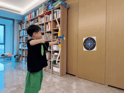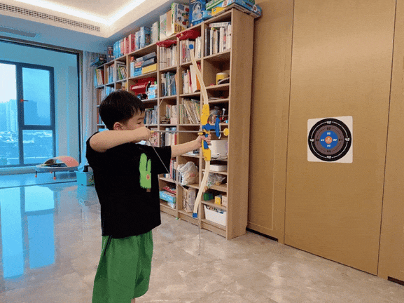 小小少年,张弓搭箭🏹。沉浸式射击体验,射程长达 15m,室内、户外都能玩。