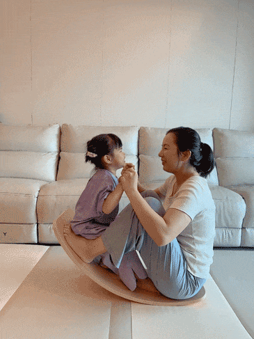 由于平衡板弧形结构的特性(不稳定性),妈妈们可以在上面做静态 + 动态的双重练习