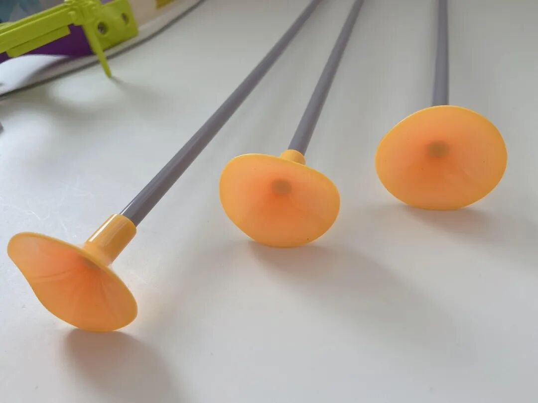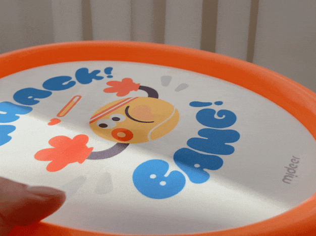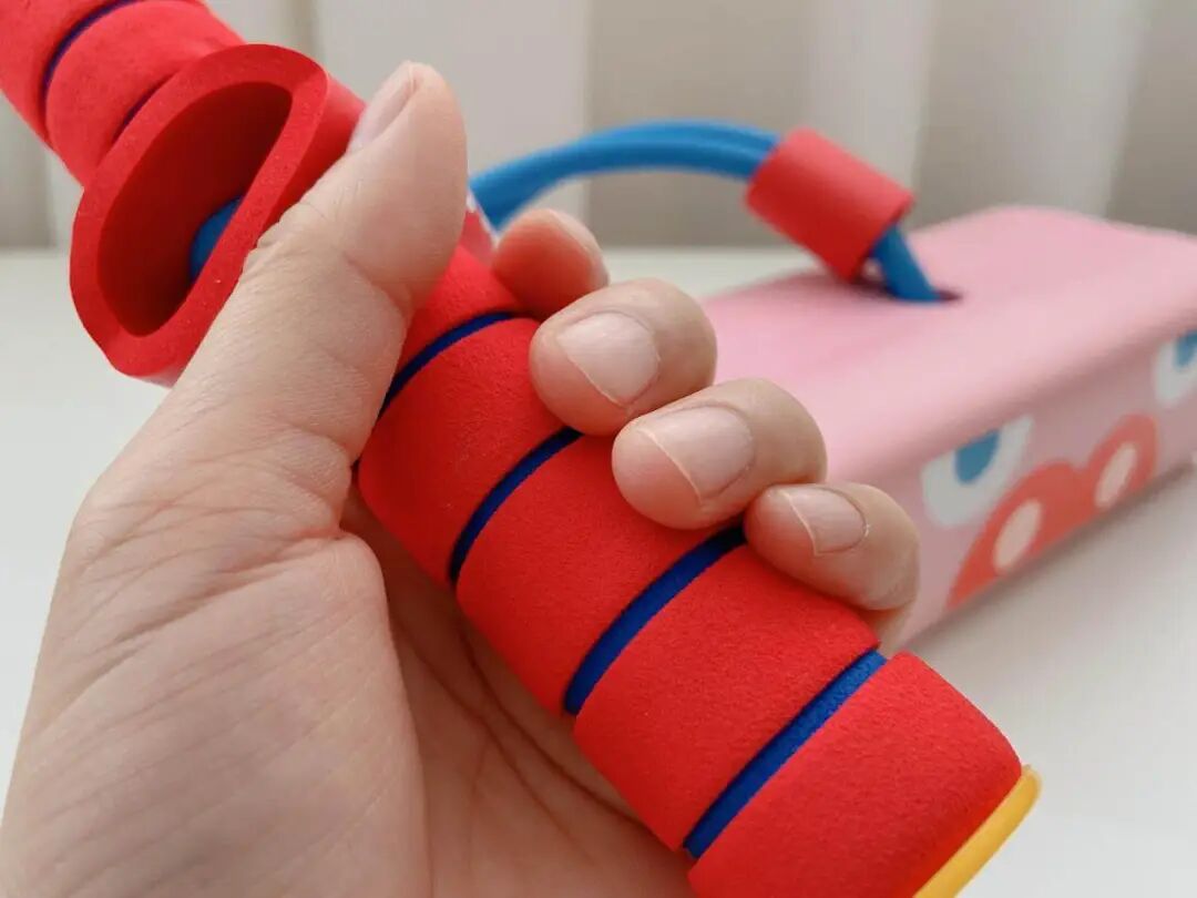 接球器柔韧抗摔,啪嗒摔地也不易变形、破损。我家小团子敲敲打打多少次了,目前看上去 9 成新,还在服役哈哈。