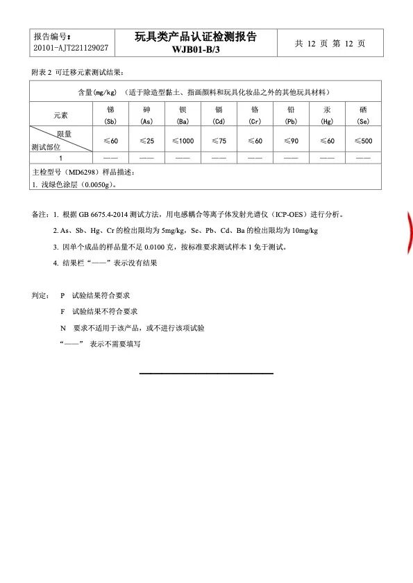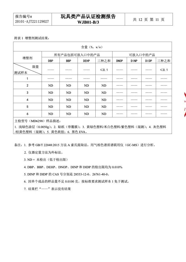 这里,咱们直接看它的检测报告,所有的有害物质都是未检出哦!