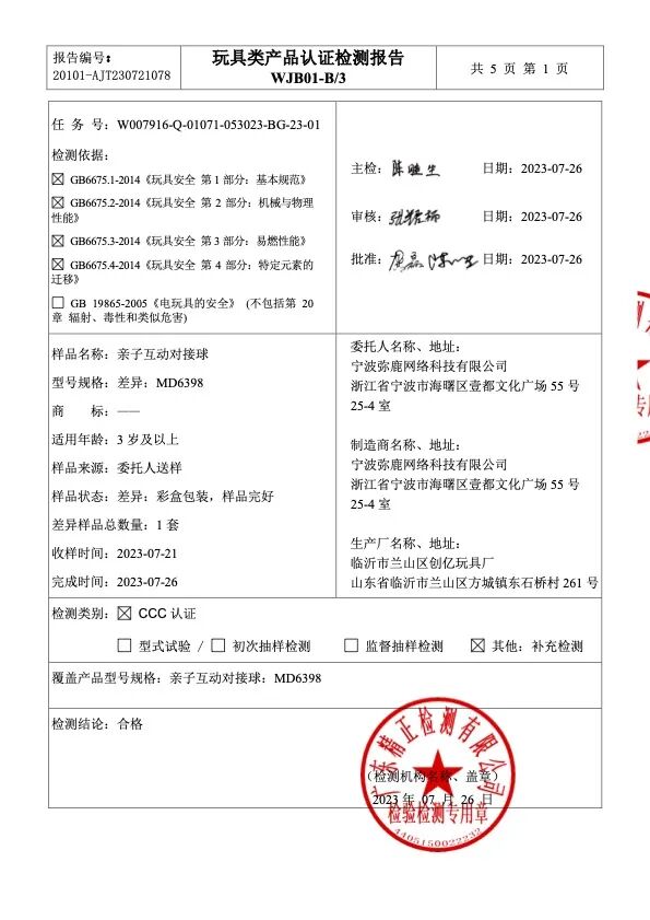 安全系数也非常高,mideer 对接球采用的是环保材质,不含BPA、不含塑化剂、不含任何有害物质。