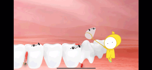 「梁龙吃树叶」本来一个远景镜头就可以带过的,但为了让孩子们看清楚梁龙牙齿的发育特点,就做成了这样: