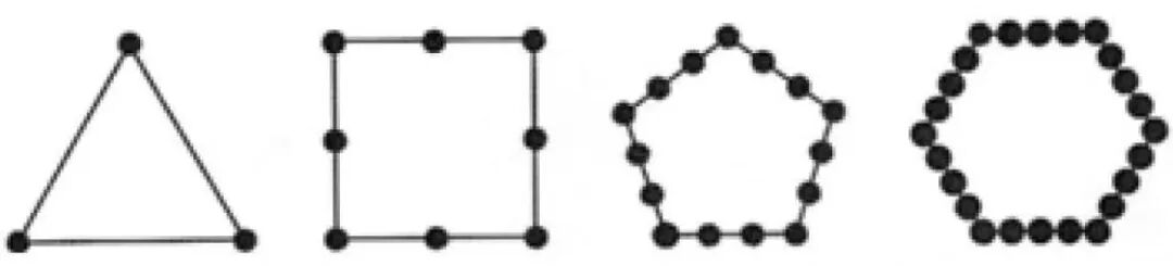 比如最简单的“三角形”,第一个图片中的三角形一共有3颗围棋子组成;第一个图片中中的三角形一共有6颗围棋子组成;第一个图片中的三角形一共有9颗围棋子组成;第一个图片中中的三角形一共有12颗围棋子组成👇