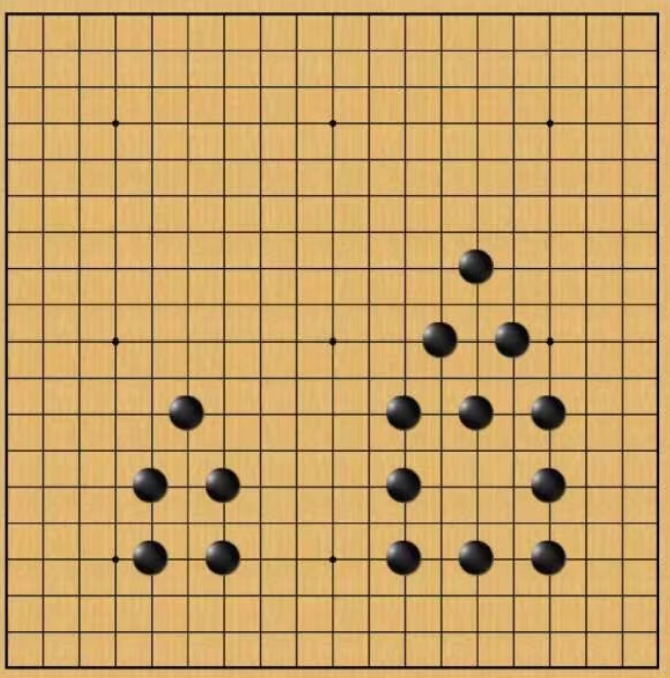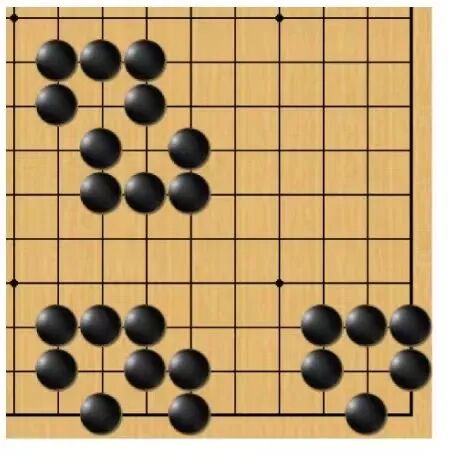 因此有经验的棋手布局时就会利用了这一点,下棋过程中有意走出方形,从而围出更大的空间,以免下出扁平臃肿的所谓“愚形”。