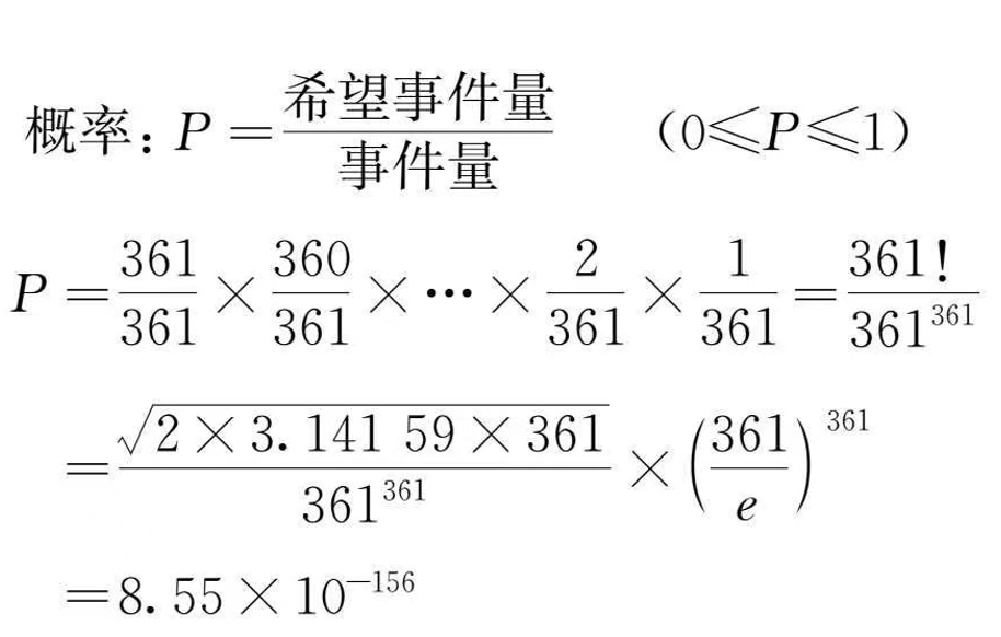 上面我们是通过排列组合而得出的阶乘计算方法,我们还能用概率的计算方法来证明“千古无同局”。