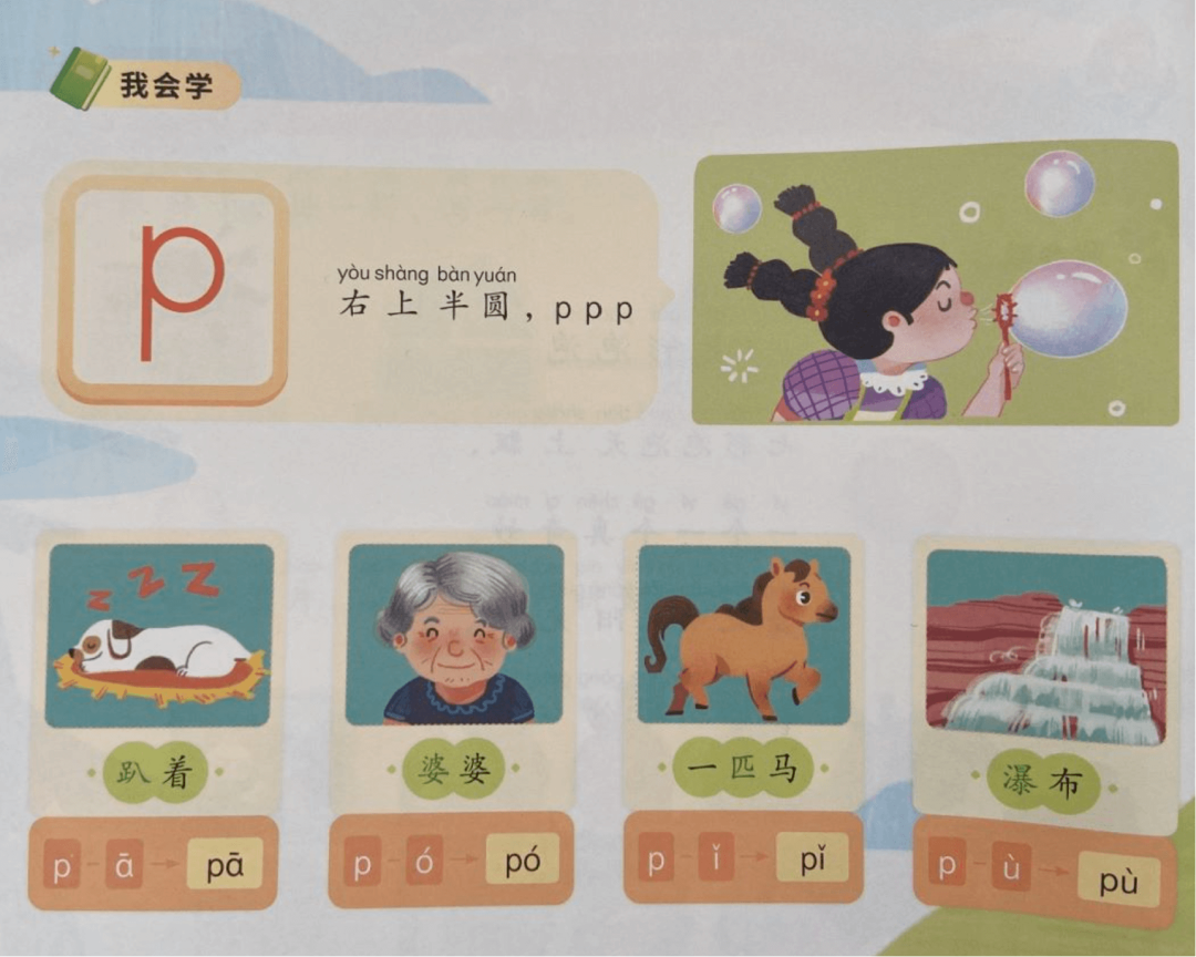 另外,学龄前拼音启蒙的话,更多的是建议在情境中启蒙(咱们统编版的教材也是在情境中去展开拼音教学的),一来是比较有趣,二来是能让娃自主地调动大脑思考。