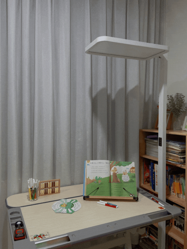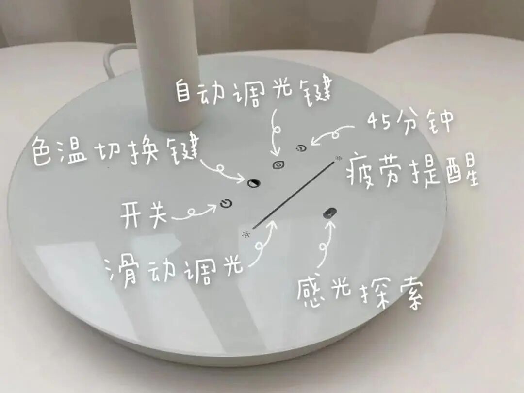 色温切换键切换色温、打开自动调光键可以在光感应器的「指导」下自动调整光线、关闭自动调光键可以自己手动调整光线强度、以及非常人性化的 45 分钟疲劳提醒,用起来非常简单~(还有双击开关键触发延时关灯,防止摸黑哦!)