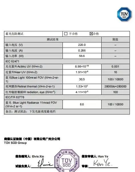 蓝光是 RG0 的最高标准,意味着无蓝光风险~