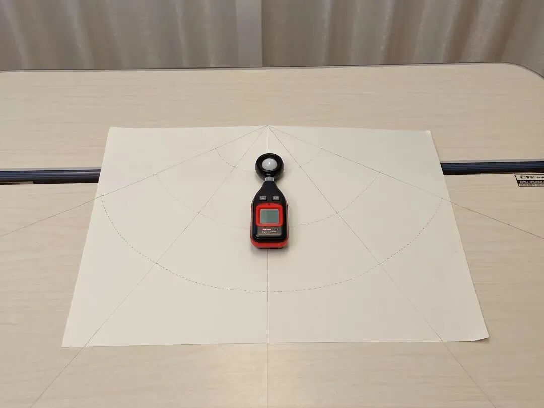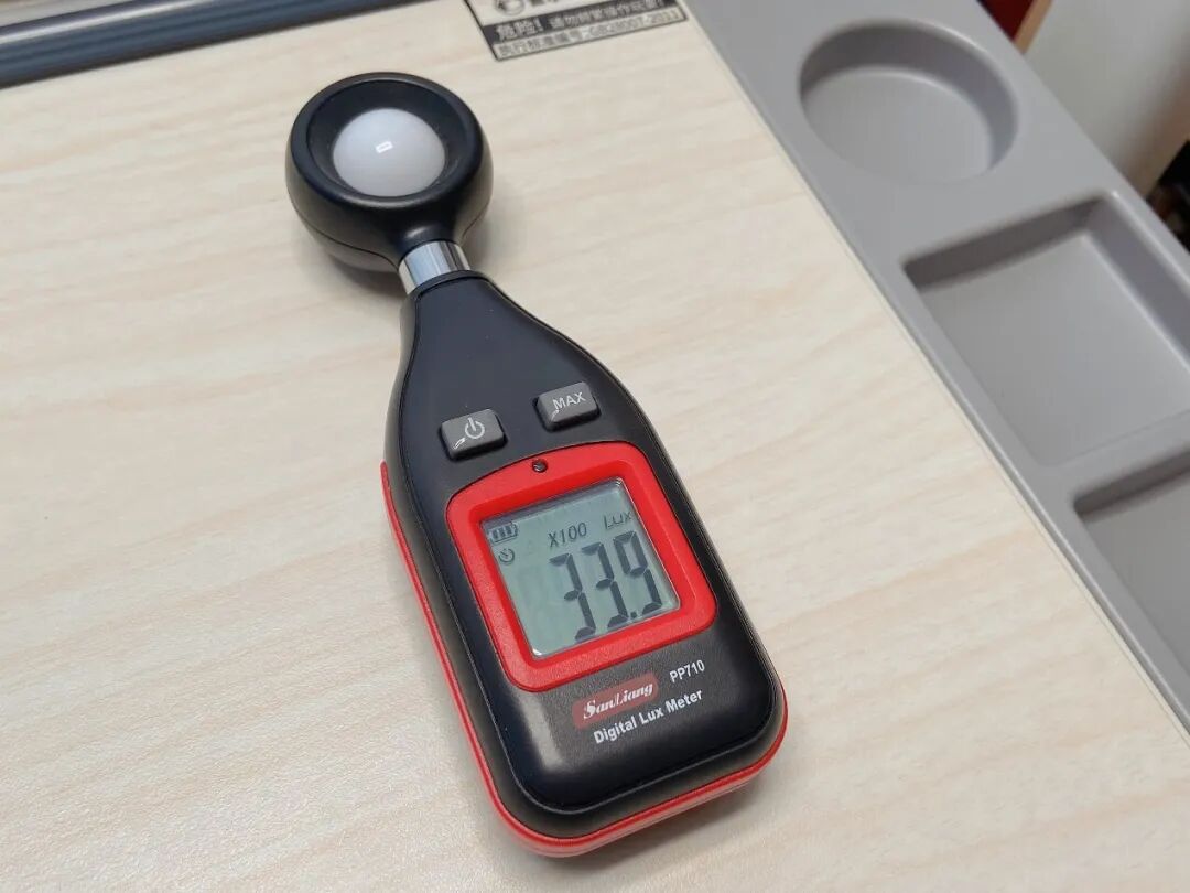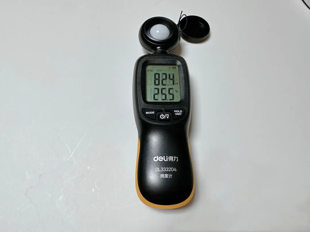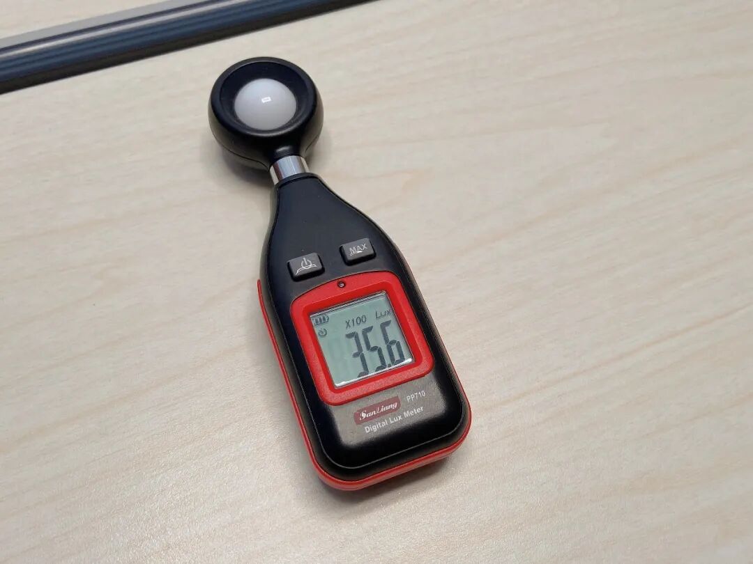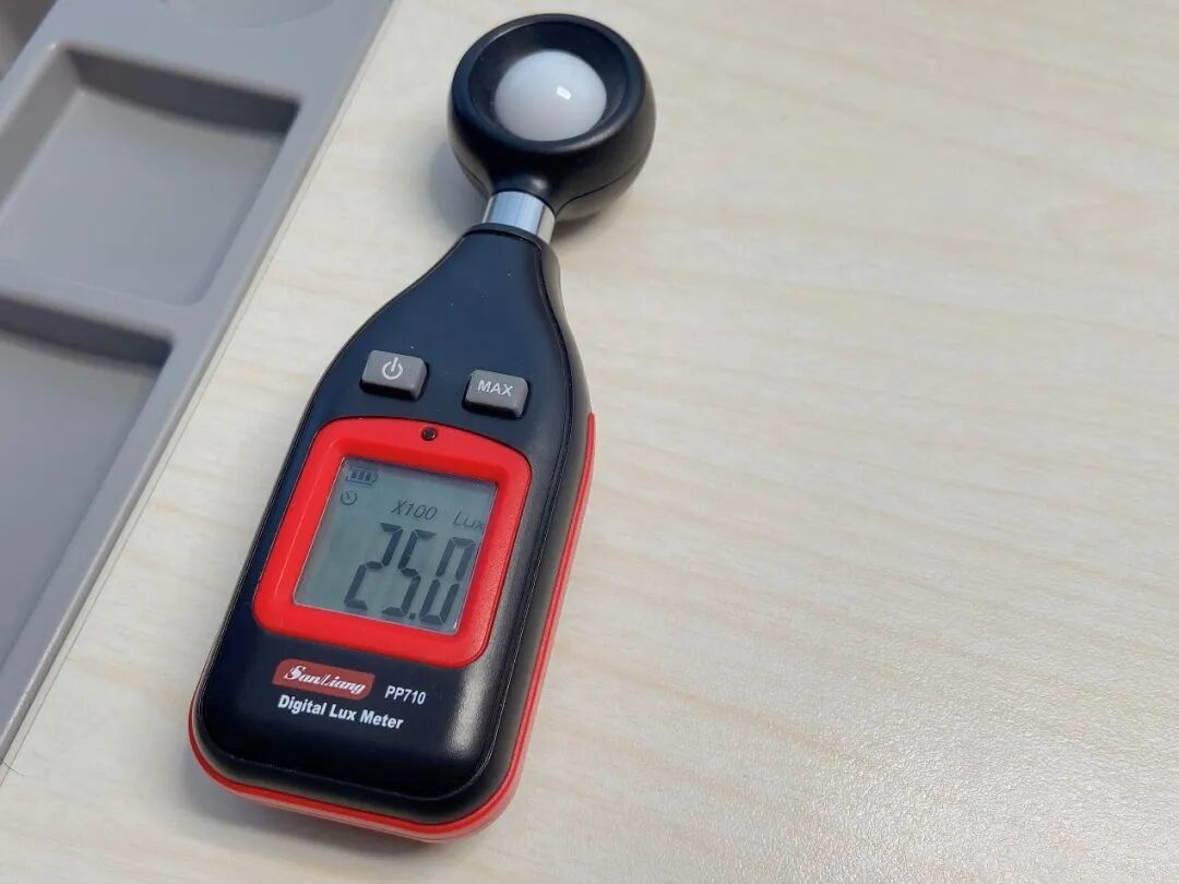 当然,咱们还是要进行一下实测,我这张游戏桌的大小大约是 1m * 0.55m,距离灯珠大约 2.2m,放在光下实测下来的照度值是 824lux。
