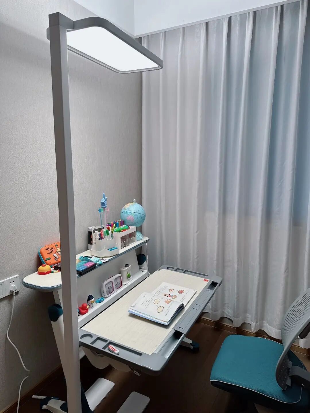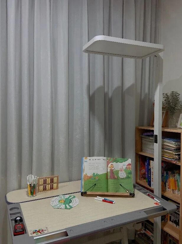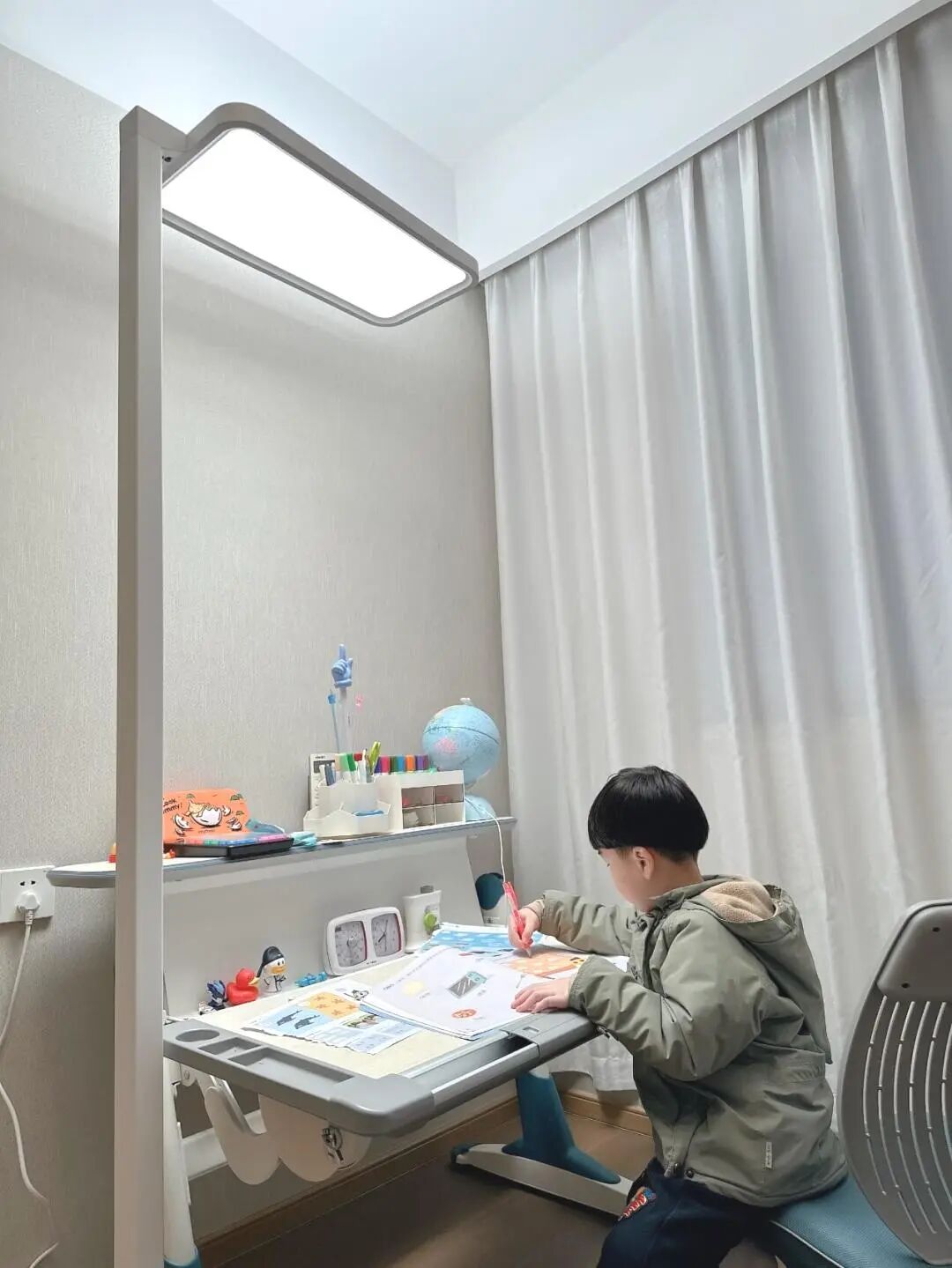 其次,如果是学习、精细阅读、手工、上课、画画、弹琴、工作、使用电脑等精细用眼的工作,则必须使用“吸顶灯作为主光源 + 台灯作为补充光源”进行搭配,不然,很可能达不到照度要求。