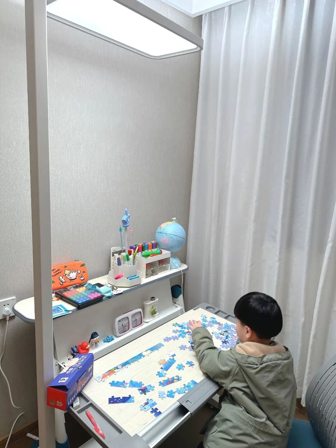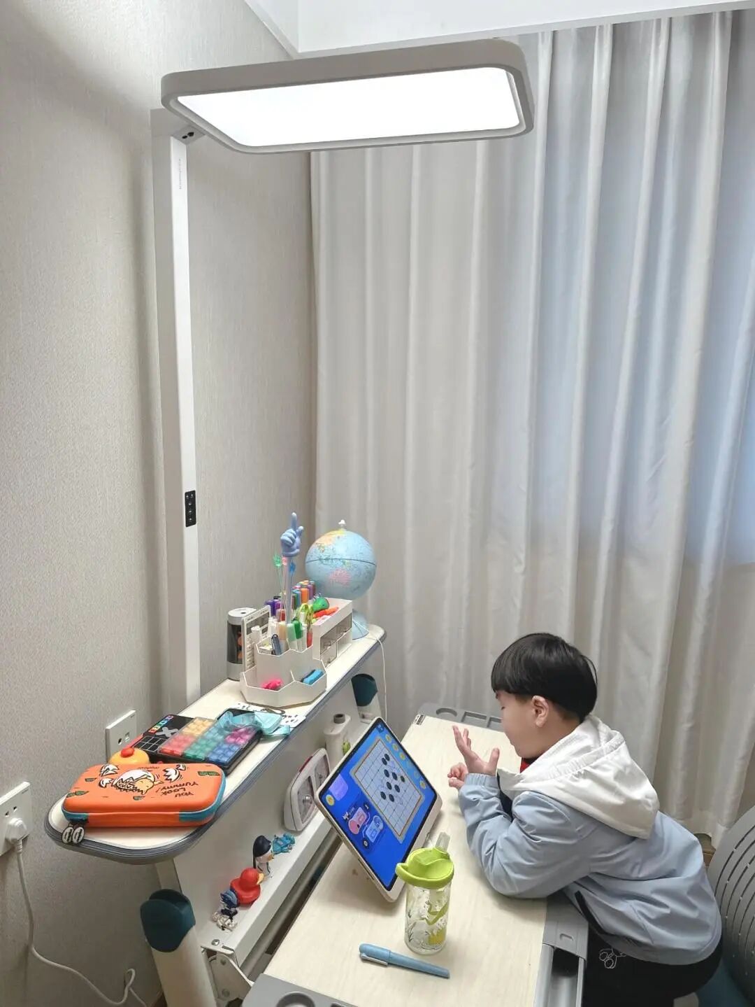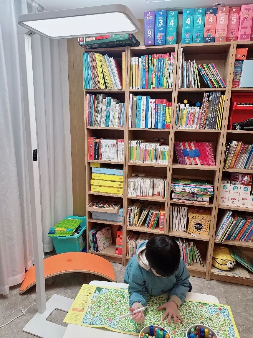 其次,如果是学习、精细阅读、手工、上课、画画、弹琴、工作、使用电脑等精细用眼的工作,则必须使用“吸顶灯作为主光源 + 台灯作为补充光源”进行搭配,不然,很可能达不到照度要求。