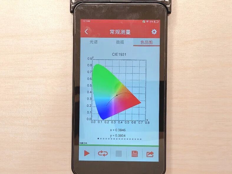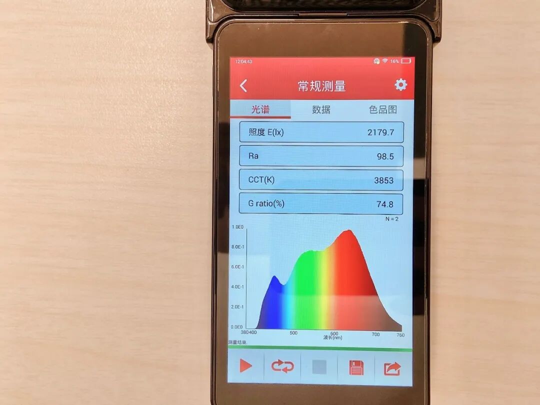 很明显,这个光谱的连续性非常高,蓝光占比极低、绿光的比例也很充足、红光更是达到了波峰,也是完全模拟了自然光的效果。