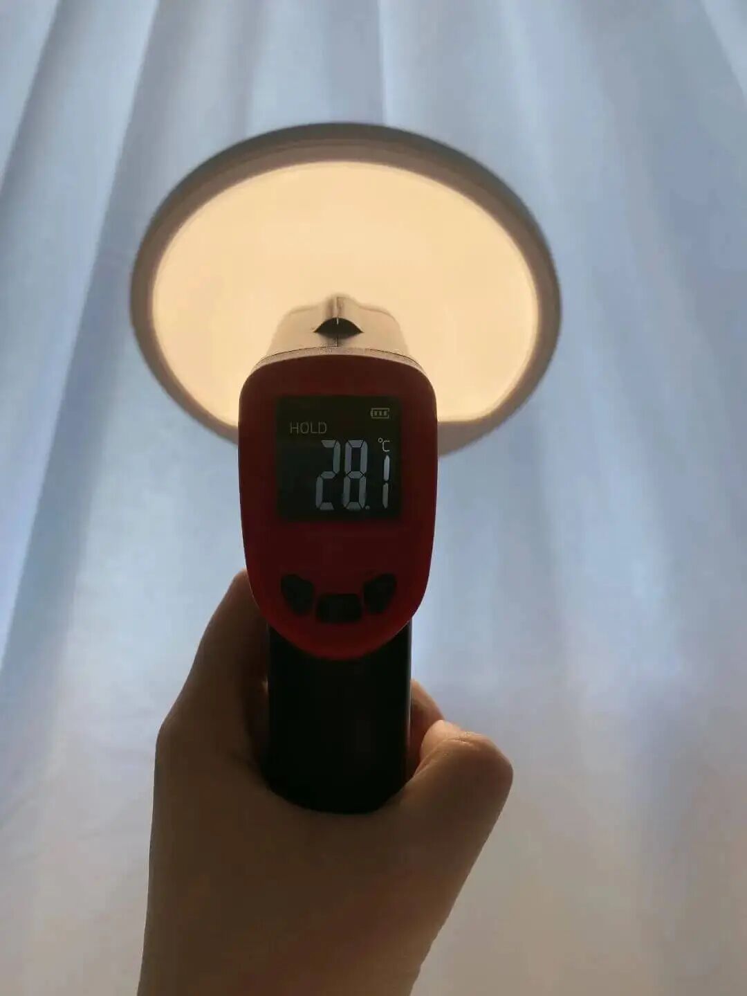 灯珠可连续使用 5 万个小时(因为,铝制灯罩散热很好,如下图,连续开了 10 小时,温度还是只有 28.1℃,和柏曼官方提供的数据很接近),无敌耐用,哈哈~