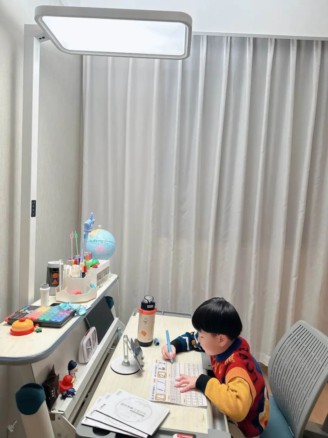 3.卧室,大多数时候也会配一个吸顶灯。那么,如果孩子不需要在卧室学习,那这个吸顶灯就够用了。