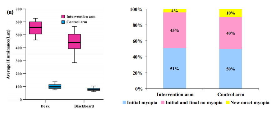💡第六组数据——2015 年,安徽医科大学为期一年的以“教室灯光照度”为变量的研究,则更为直观——研究结果显示:当教室课桌、黑板处照度提升后,学生的新发近视率由 10% 直接降到了 4%↓