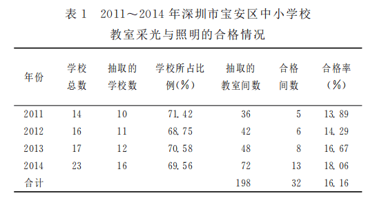 💡第一组数据:有关部门在 2011~2014 年随机抽检了深圳市 49 所中小学共计 198 间教室的灯光情况,发现,深圳市中小学教室照明合格率非常低,4年中,甚至没有一年的合格率能达到 20%!