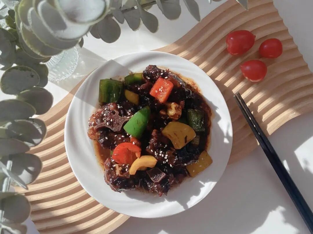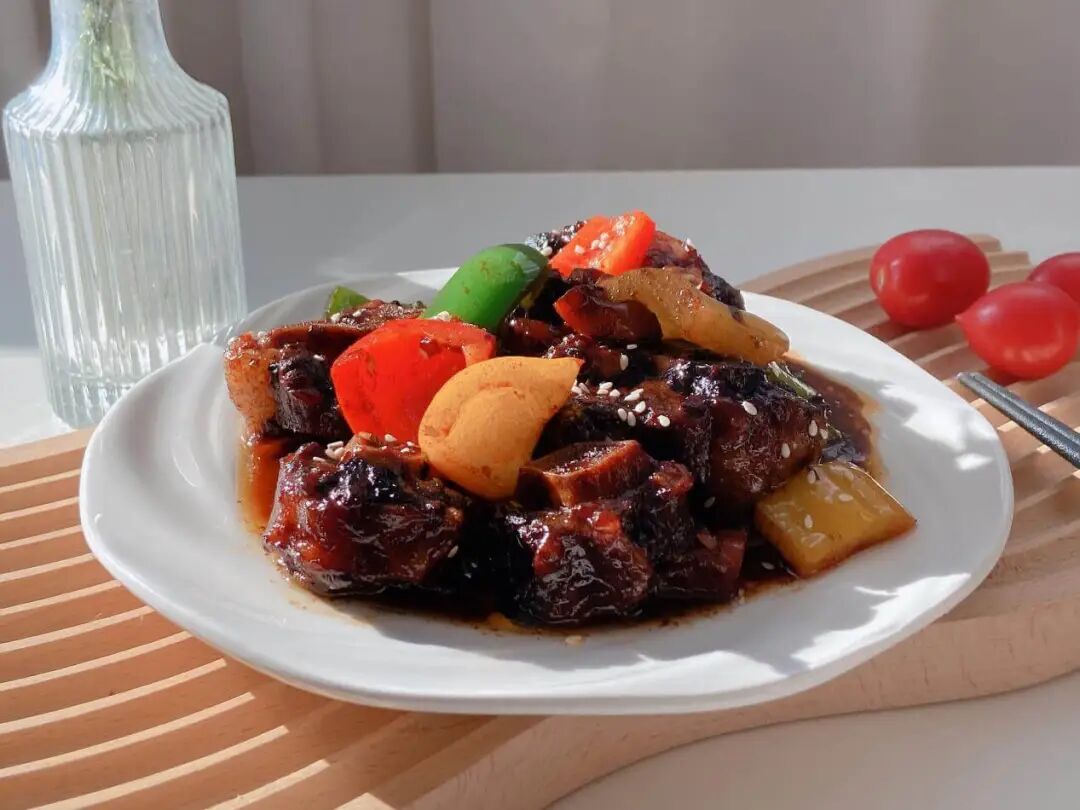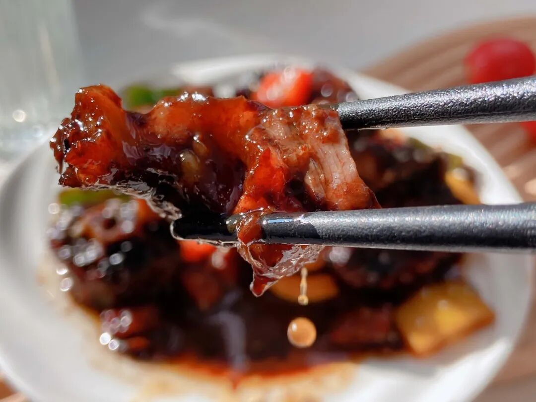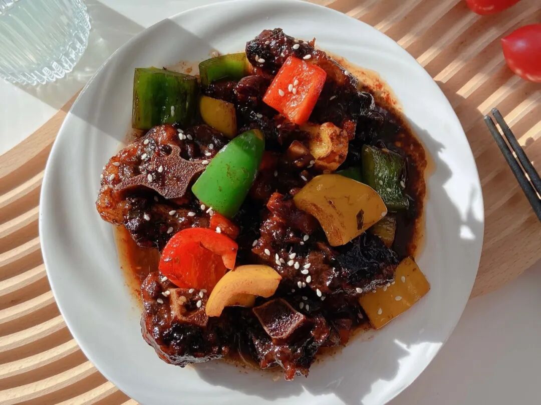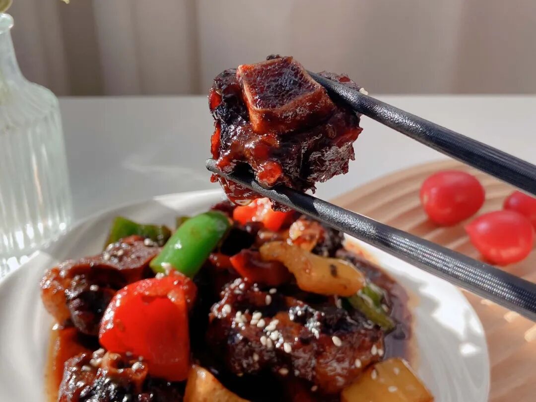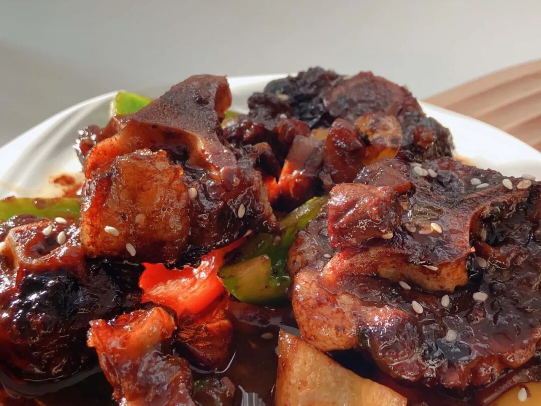 一道吮指酱香牛尾骨,久炖至牛肉软弹、牛骨丝丝入味,裹上一层糖色鲜甜初显,再加一点山楂干,保管你会吃到不一样、吃得惊涛骇浪!