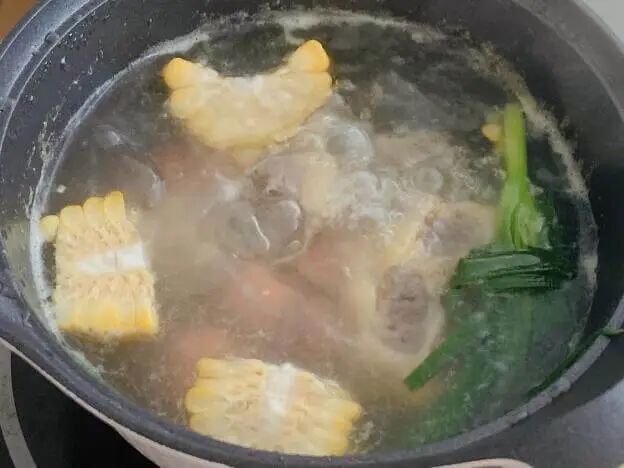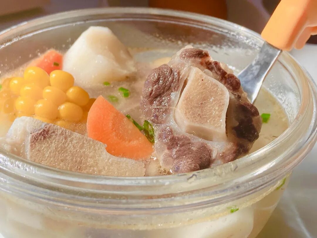 骨头也舍不得丢,得来回嗦上好几遍。山药、玉米呢,吸足了汤汁,比肉还受欢迎。