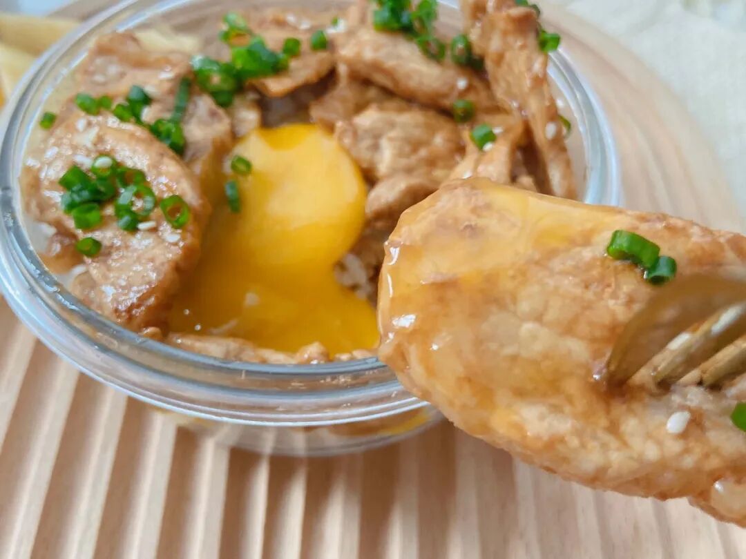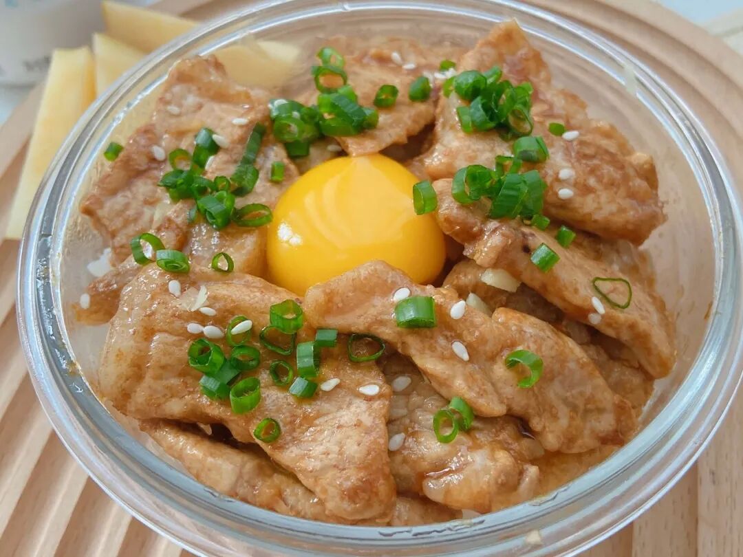 日式猪肉丼,酱汁、猪肉、米饭搭配和谐,少盐味淡、口感纤细,同一般的浓酱盖饭相比要更克制。