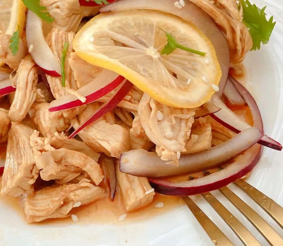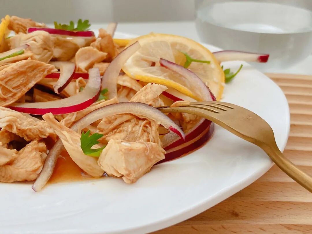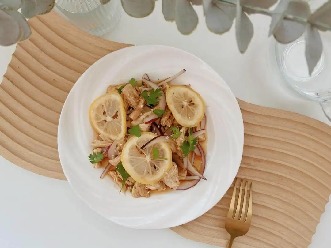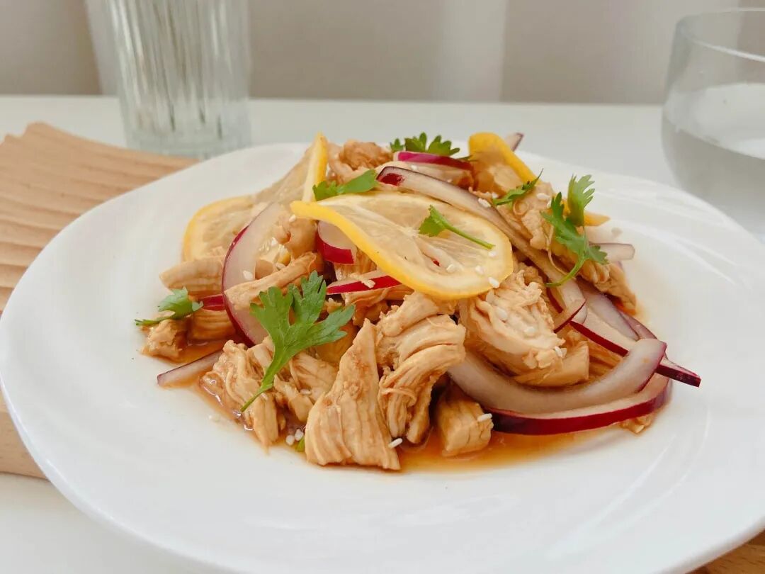 鸡肉外焦里嫩(用鸡腿肉更鲜嫩,鸡胸肉就干香更足),柠檬酸甜爽口,再融了洋葱蒜片的清香气,一吃一个不吱声。