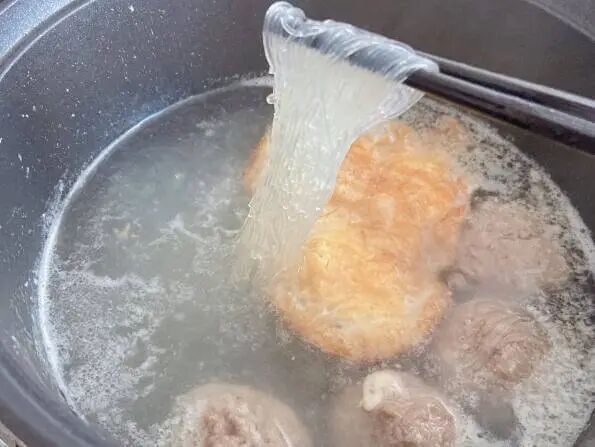 2.放入牛肉丸、粉丝煮3分钟