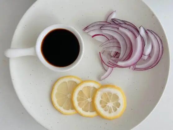 1.洋葱切丝,柠檬切片去籽