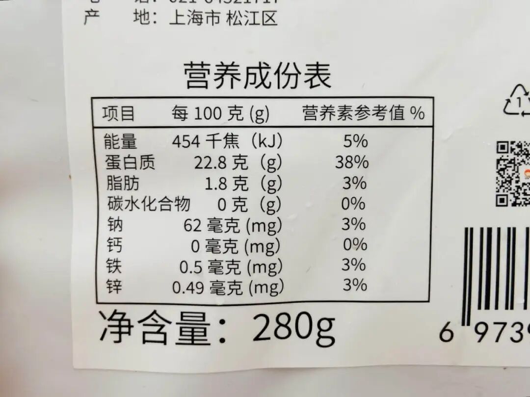 直接从萌小丸这款鸡胸肉的成分来看,它的脂肪含量要比一般标准更低,只有 1.8g/100g,同时蛋白质含量 22.8g/100g,是牛奶的 7 倍,妥妥的高蛋白低脂肪食物!
