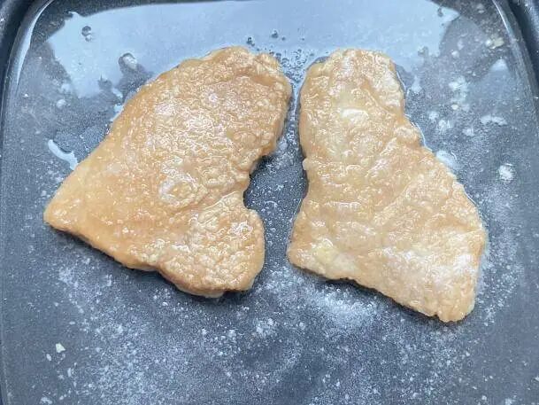 5.锅热倒油加入猪排,煎至两面金黄