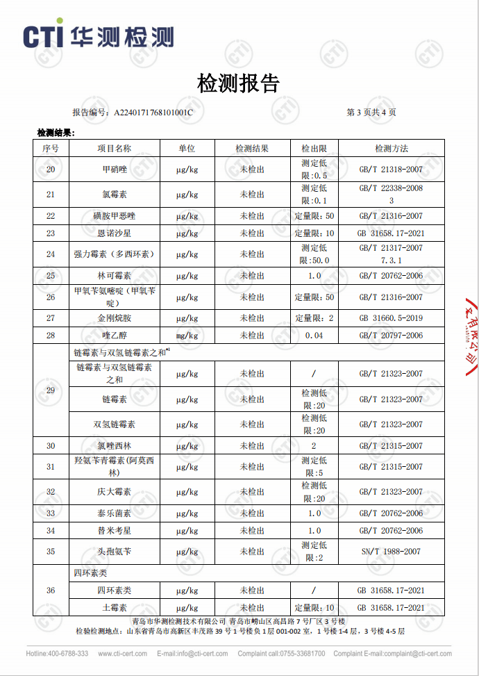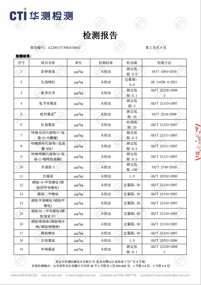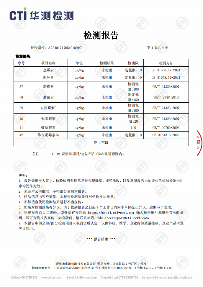最后,每个批次在加工过程中,都要经过层层检验,经历 43 项抗生素检查,确认未检出才能获得无抗认证👇。