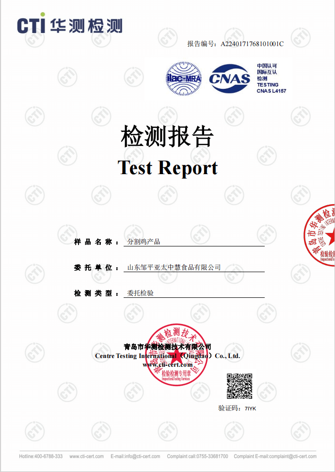 直接放它的检测报告,一目了然。