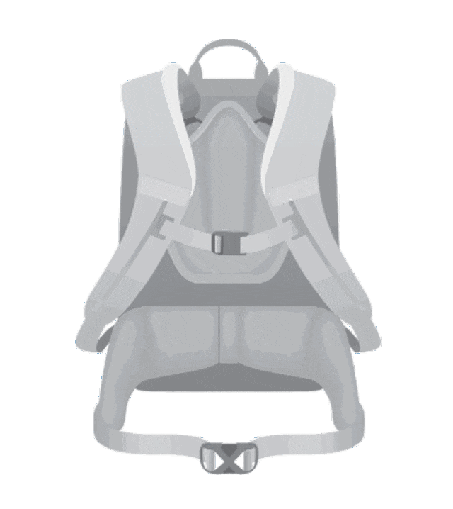 此外,为了让书包的重心尽可能地接近人体重心、进一步减震,一些护脊书包的还会有像翅膀一样的骨盆垫,稳住书包的下半部分,进一步分散压力,将书包重量转移到背部和臀部,让背部和臀部共同承重,同时减少了书本的前后及上下位移👇