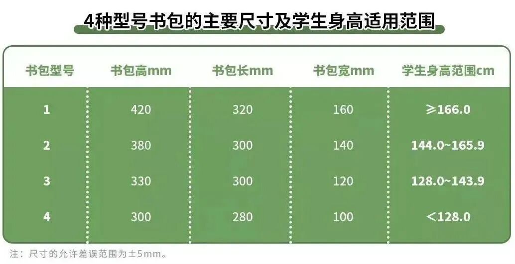 至于书包尺寸的选择,需要根据孩子的年级和身高选择。可以参考《中小学生书包卫生要求》给出的建议👇