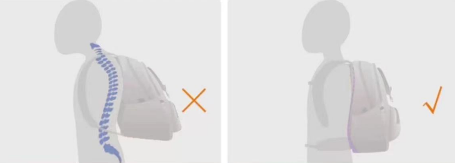 本来娃的骨骼就比较柔软,且没有成型,处在生长发育阶段。过重还没有护脊功能的书包,会把孩子的双肩向后拉扯,这时孩子会不自觉地前倾,时间一长,轻则会导致驼背、含胸,重则甚至脊柱侧弯和高低肩。
