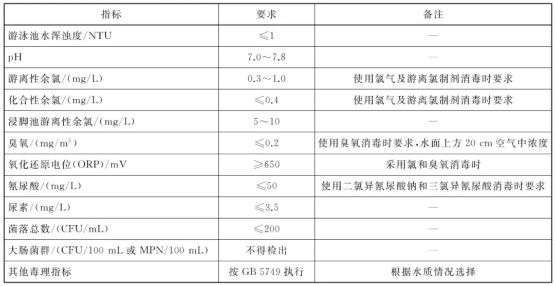 那么,什么样的泳池水算合格呢?主要看——浑浊度、尿素、菌落总数、大肠菌数、pH值——这 5 项指标是否符合《公共场所卫生指标及限值要求》👇
