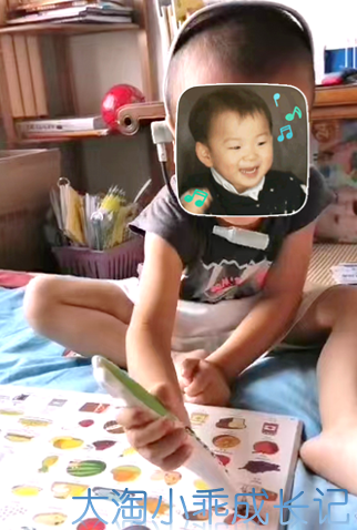 小乖1岁多就会学着哥哥的样子,点读英语单词书。