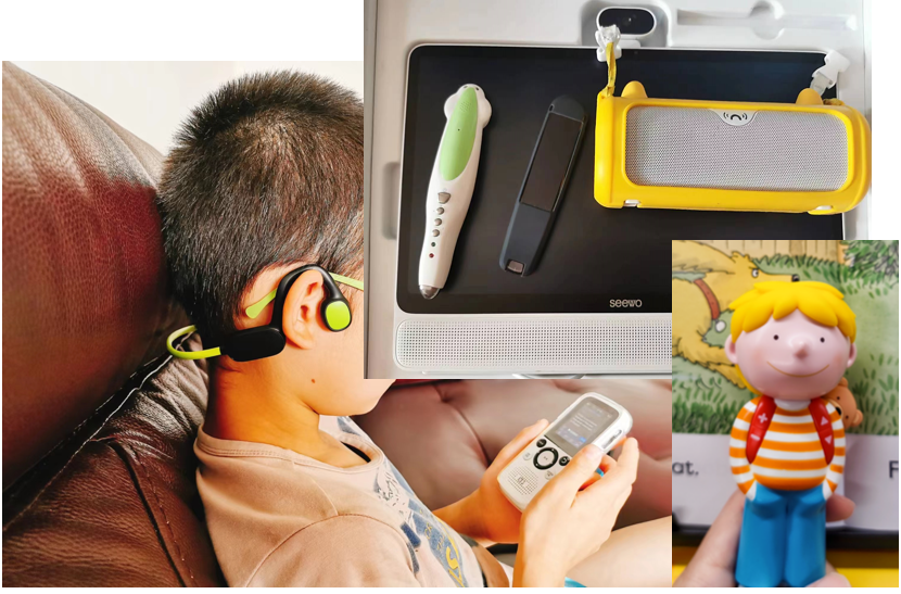 自鸡还想省妈,咱就武装到位。淘妈买过的设备,比图上可多多了,词典笔至少3个,播放器至少4个,点读笔至少3根,耳机至少2个……