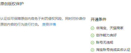 用手机某宝扫码登陆光合平台,点左侧的功能栏里找到“账号资产”,点“基础权益”,原创版权保护这个版块里的开通条件,点“淘宝账号完成实名认证”。