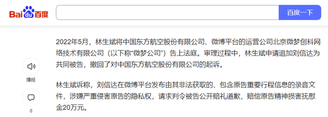 但是,林生斌一点不害怕,反而把航空公司、微博运营平台都告上法庭,顺带把刘信荣也告了,说,他们侵犯了他的隐私权。