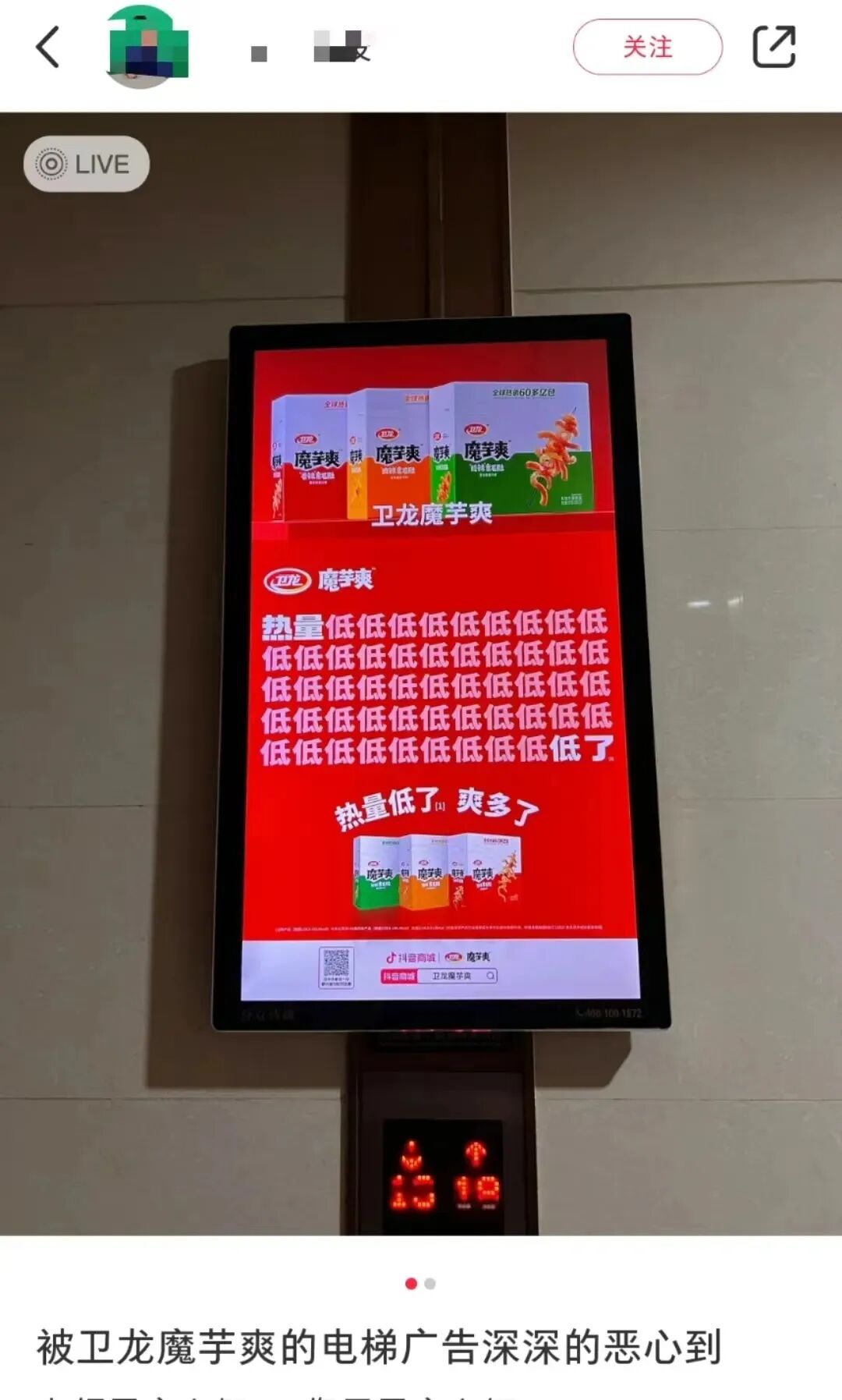不仅如此,卫龙投放的魔芋爽电梯广告还被指“扰民”了。