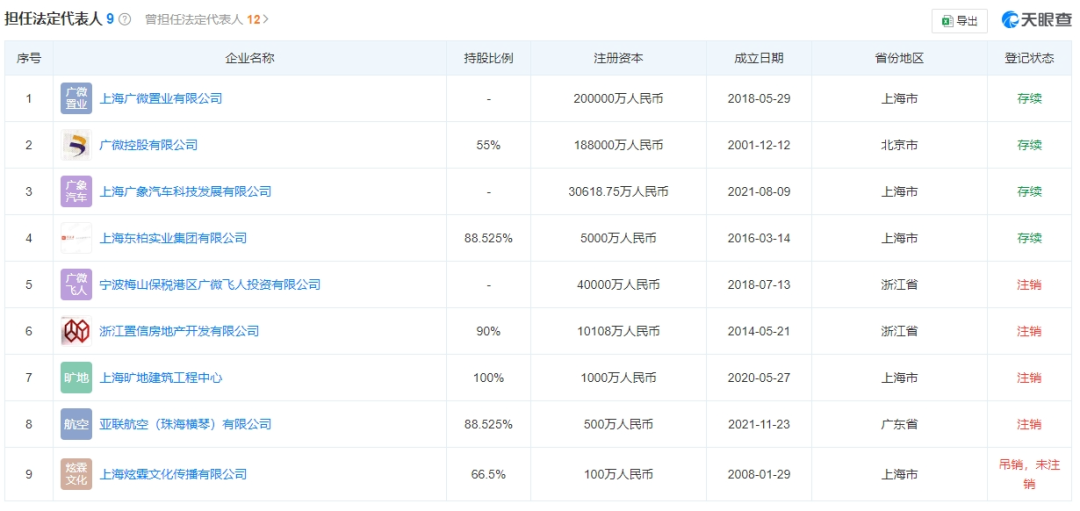陈炫霖又是什么来头呢?天眼查显示,目前他担任9家公司的法定代表人,任职31家企业。
