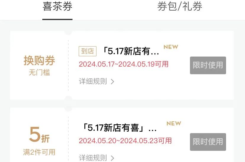 北京白领小琴刚上班,就在群里收到了喜茶“买一送一”的优惠券,入手了两杯经典产品“芝芝金凤茶王”,原价15元,折后7.5元一杯,这要是换成原价8元的“纯绿茶妍后”,只要4元一杯,比蜜雪冰城还便宜,必须火速拿下啊!