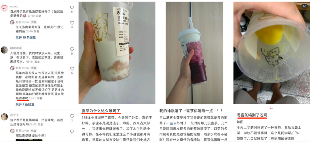 虽然在降价、加盟、下沉的一系列组合拳下,喜茶又恢复跑步向前的姿态,但却是以牺牲品牌调性与口碑为代价的。