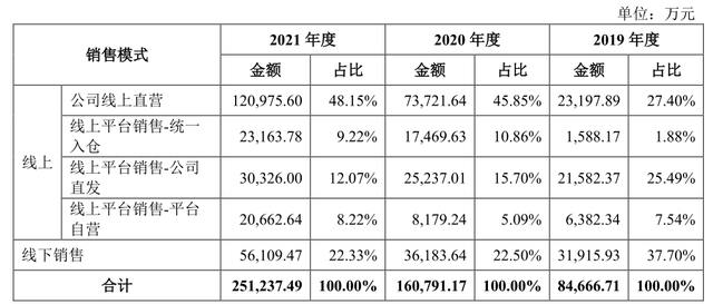 线上渠道的成绩越耀眼,线下渠道就更显得平淡。线下收入占比从2019年的37.7%,下滑至目前的22.33%。