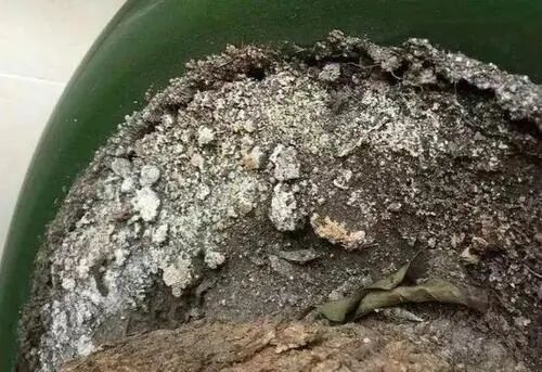 养花土本来是褐色的,如果你发现盆土里出现了白霜,这是盆土盐碱化的表现,没有一种花卉能在盐碱化比较严重的土壤里健康的生长,这个时候要赶紧换盆,不然这盆花就活不长久了。