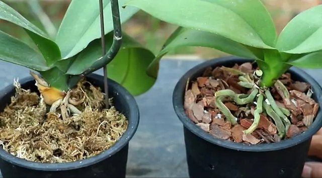 蝴蝶兰栽种时,可以用营养水浸泡植料,这样栽种后的蝴蝶兰在一个月内基本不需要额外施肥。