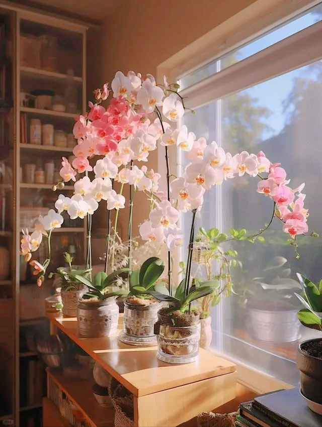 蝴蝶兰的花朵宛如翩翩起舞的蝴蝶,灵动而可爱,整个株型显得文雅而高贵,无论是点缀客厅、卧室还是书房,都能为空间增添一抹亮色,令人赏心悦目。