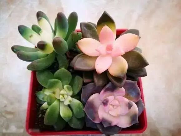 这样的多肉大多是通过喷施药物来改变多肉叶片里的叶绿素,让它的叶片呈现出晶莹剔透的色泽,一般以粉色、黄色、绿色为主。