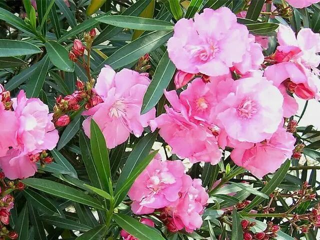 很多人养花,只管选好看了,比如说在南方地区的夹竹桃,它的花朵很美,叶片也好看,而且花期超长,几乎是一处四季皆可开花,但是这样的的花,确是一种毒性十足的花,叶片、花朵、茎杆都有毒,这样的毒花,最好不要养家里,特别是家里有孩子或是宠物的,若是不小心误食就会有可能会有大麻烦。